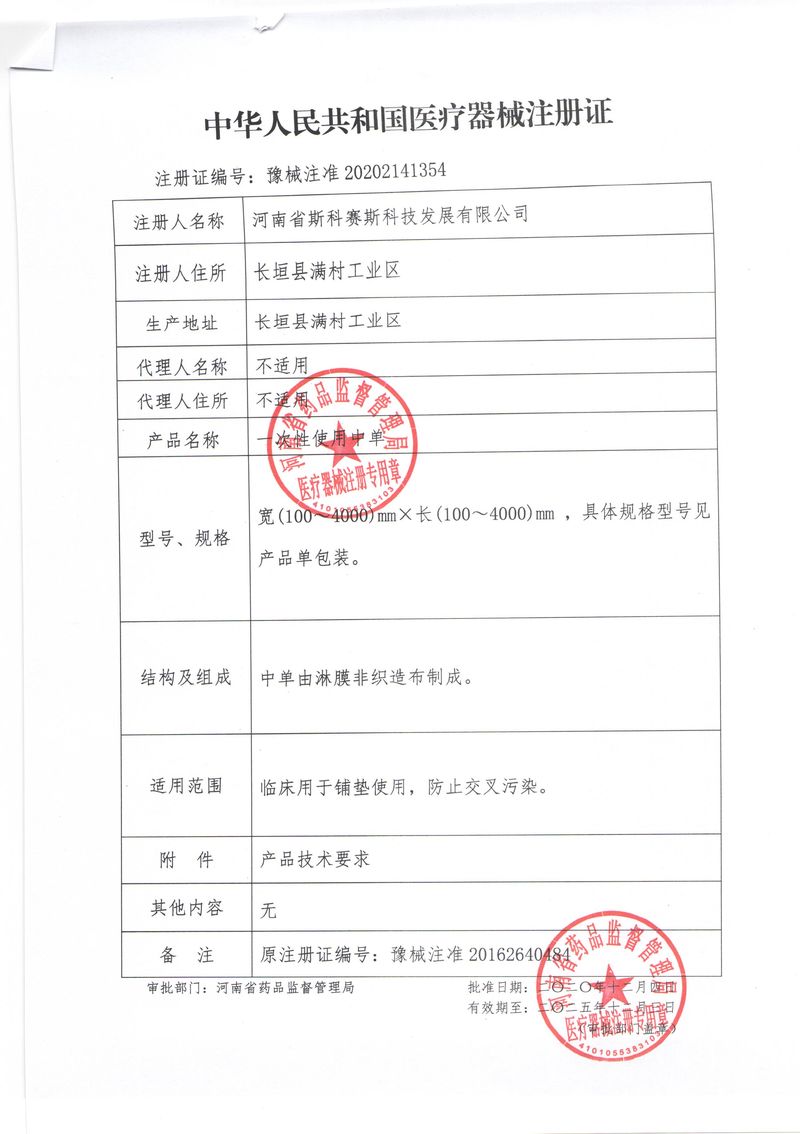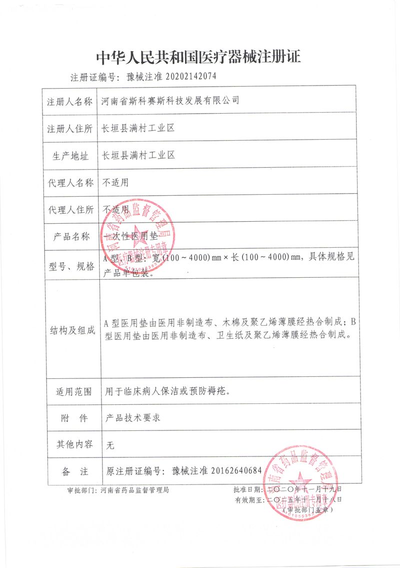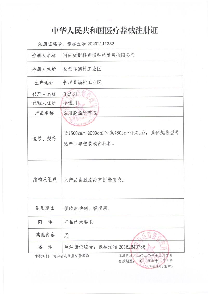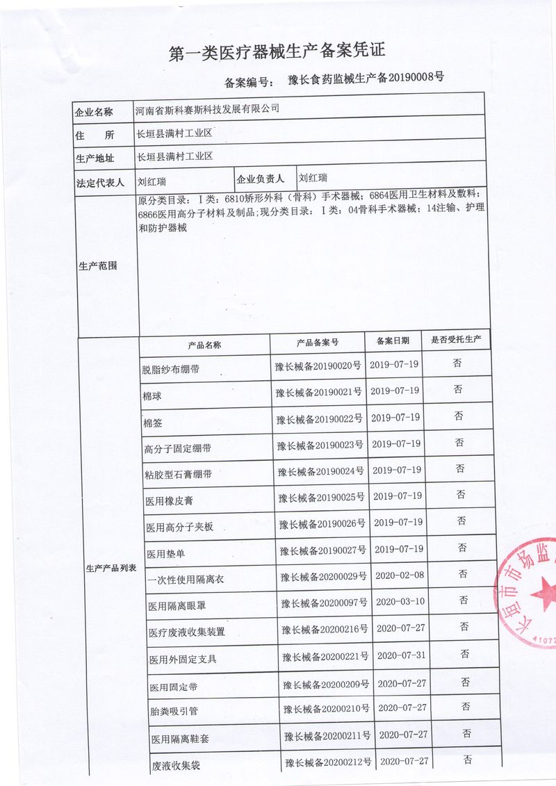 河南省斯科賽斯科技發(fā)展有限公司創(chuàng)建于 2011 年,位于“中國醫(yī)療耗材之都”- 河南省長垣縣,西臨 308 省道,南靠新菏鐵路,北依長濟(jì)高速,交通便捷,經(jīng)濟(jì)發(fā)達(dá),環(huán)境優(yōu)美。斯科賽斯積極進(jìn)入醫(yī)療健康和服務(wù)領(lǐng)域,秉承為用戶創(chuàng)造價值的理念,專注于醫(yī)用耗材解決方案的研發(fā)和運(yùn)營,并為用戶提供完善的產(chǎn)品解決方案;  斯科賽斯主要生產(chǎn)醫(yī)用麻醉系列、醫(yī)用高分子系列、醫(yī)用敷料包系列、醫(yī)用無紡布系列、醫(yī)用防護(hù)系列、醫(yī)用脫脂棉系列、生物材料制品類等七大類、100 多個品種、400 多個規(guī)格的產(chǎn)品。公司占地面積約 30000 平方米,建筑面積20000 平方米,擁有 10 萬級的凈化車間總面積 10000 平方米。擁有國際先進(jìn)水平的生產(chǎn)設(shè)備和檢測儀器,技術(shù)裝備精良,檢測手段完善,為醫(yī)療行業(yè)的不斷發(fā)展進(jìn)步提供保障。公司順利通過 ISO9001、ISO13485 質(zhì)量管理體系認(rèn)證。  斯科賽斯堅持研發(fā)高科技新產(chǎn)品,力爭在醫(yī)療器械關(guān)鍵領(lǐng)域取得技術(shù)和研發(fā)的重大突破;立足國內(nèi)和國際兩個市場,逐步實(shí)現(xiàn)管理理念、經(jīng)營機(jī)制、人力資源、技術(shù)、產(chǎn)品、市場等全方位對接,提高企業(yè)的核心競爭力;過去的歲月里,斯科賽斯砥礪前行,誠信務(wù)實(shí),銳意進(jìn)取,不斷創(chuàng)新,用自己的睿智和辛勞,以富有責(zé)任感的使命,在探索中追求,在追求中超越,致力于成為值得信賴的醫(yī)療用品生產(chǎn)企業(yè)!在未來的日子里,斯科賽斯將一如既往豪情滿懷,信心百倍,攜手并肩,執(zhí)著追求,向更高的的目標(biāo)前進(jìn),鑄造新的輝煌!